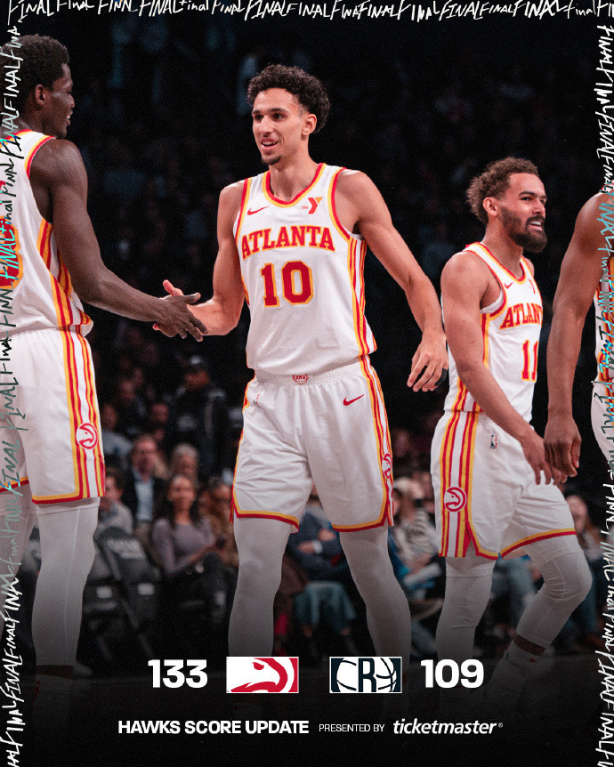 老鹰今天在客场以133-109大胜篮网,战绩来到38胜42负,守住了东部第八的位置,领先公牛1个胜场,领先热火2个胜场。只要能保住第八名,老鹰只需要赢一场附加赛就能获得季后赛席位,打进季后赛的希望还是很大的。
